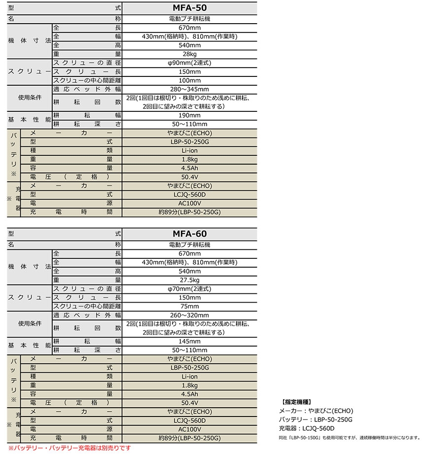 ●稼働時間の目安は40~60分。(ただし作業条件による)