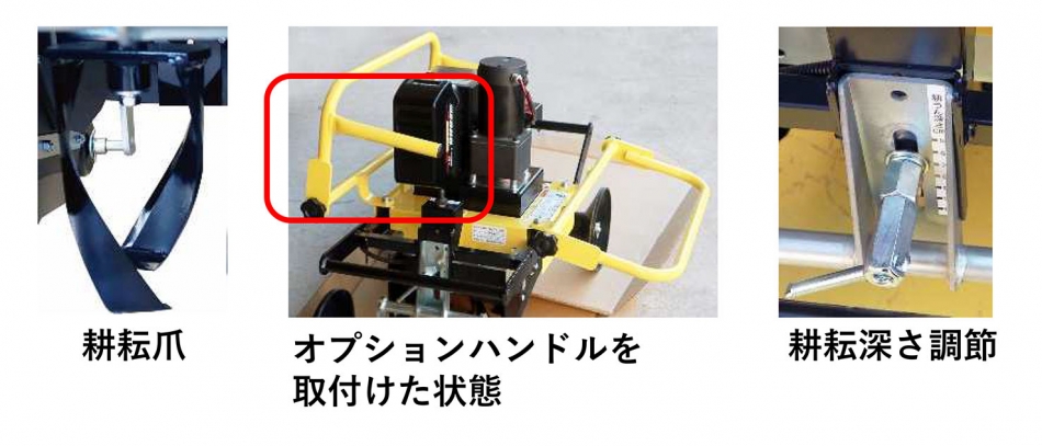 ●耕耘深さは、車輪の高さを変えることで5~11㎝の間で可能です。